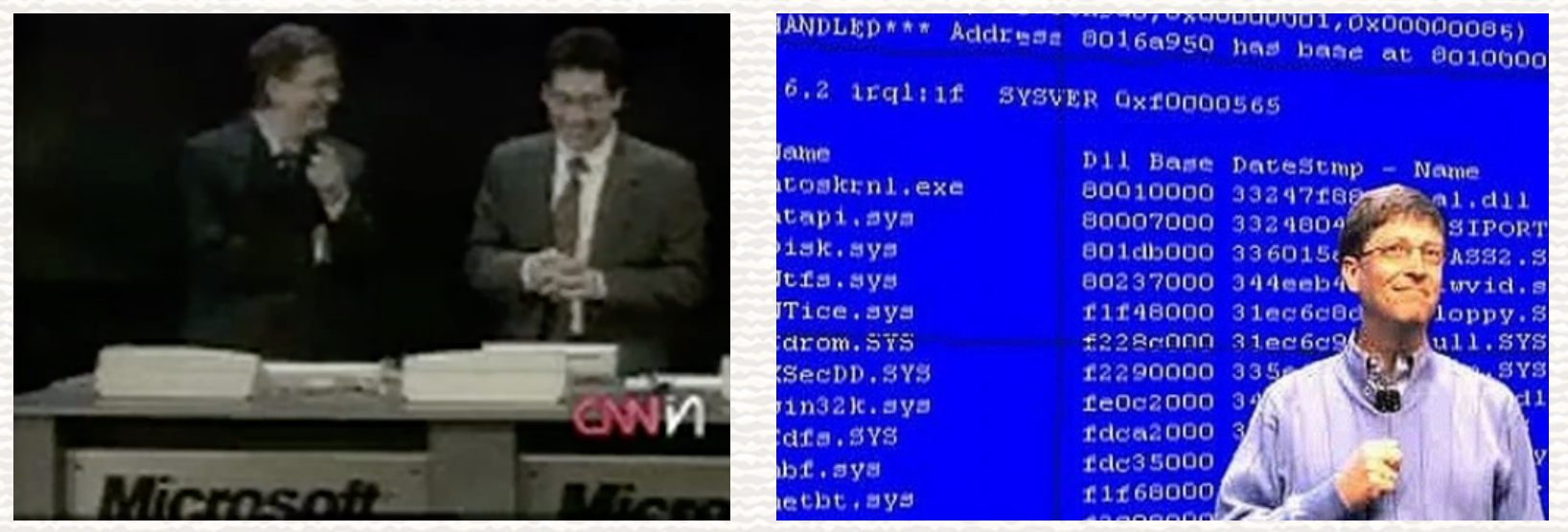 1.3. 比尔·盖茨在windows 98现场展示会与观众共同见证死机蓝屏...