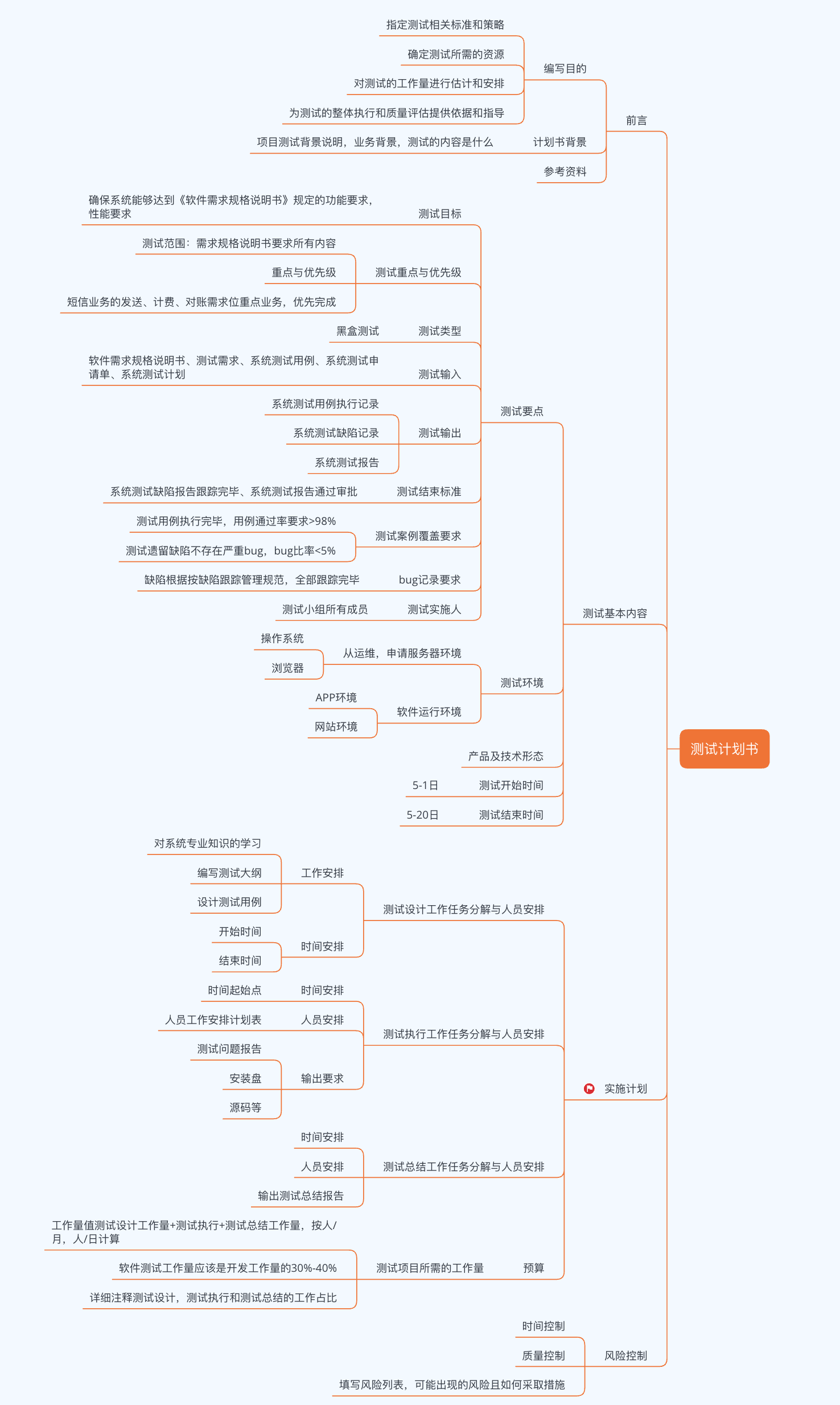 - 明确测试过程中需要经历的测试阶段(单元、集成、系统、验收测试时间划分)