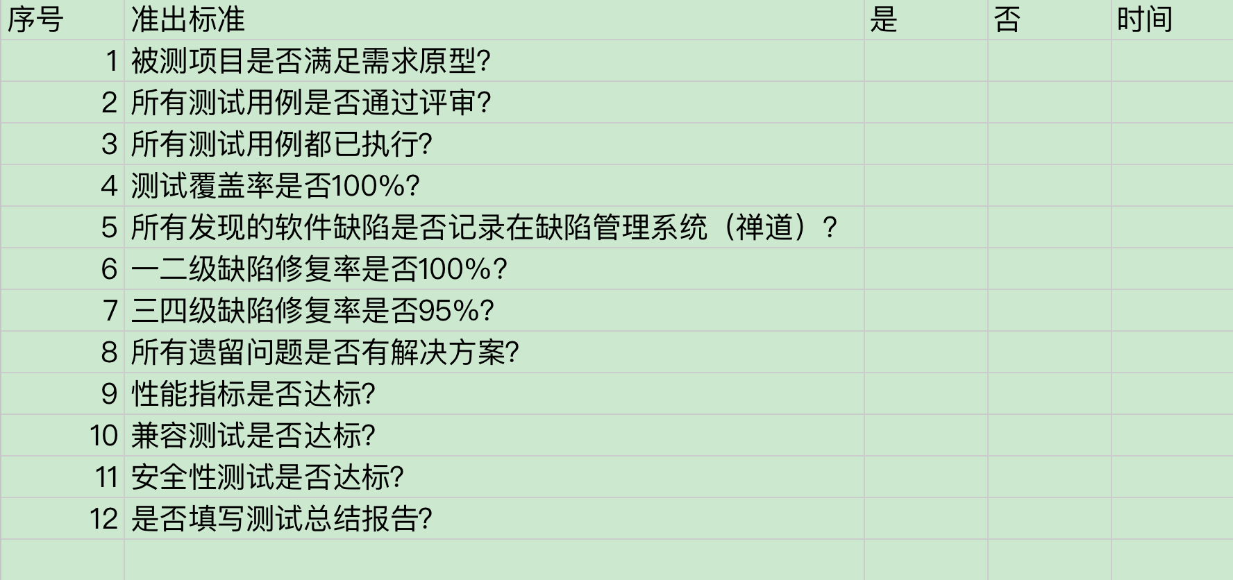1.23. 测试准出标准