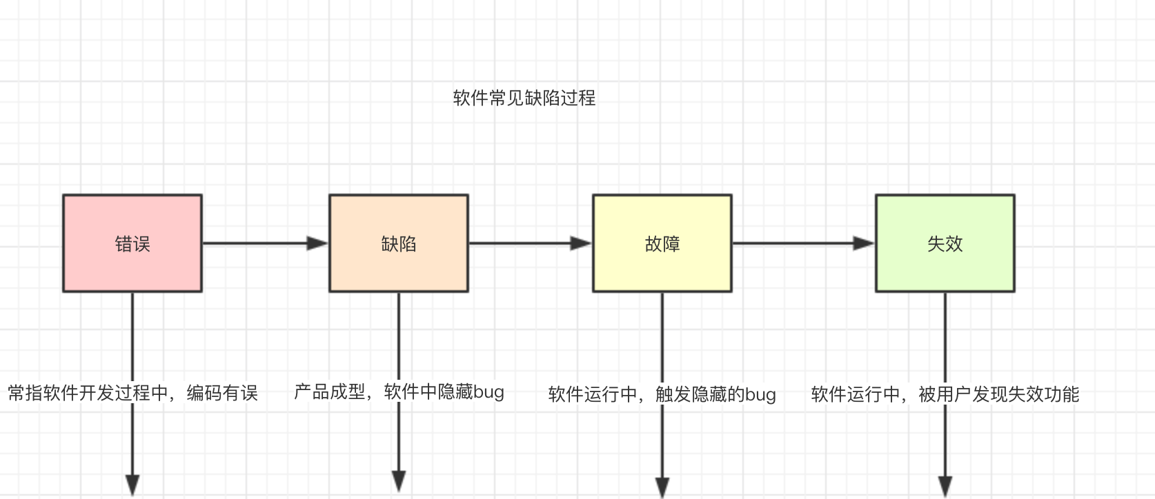 - 错误(mistake) 人为造成软件的故障