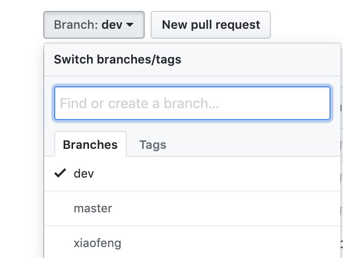 此时github远程多了一个新分支,xiaofeng,代码也在里面了