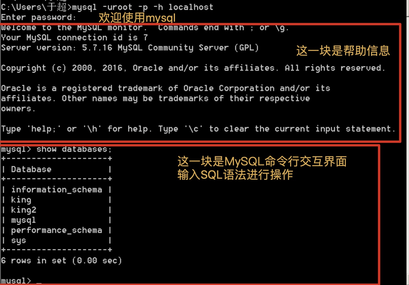 在确保咱们启动了MySQL服务端的前提下,可以使用客户端命令行,来登录数据库。